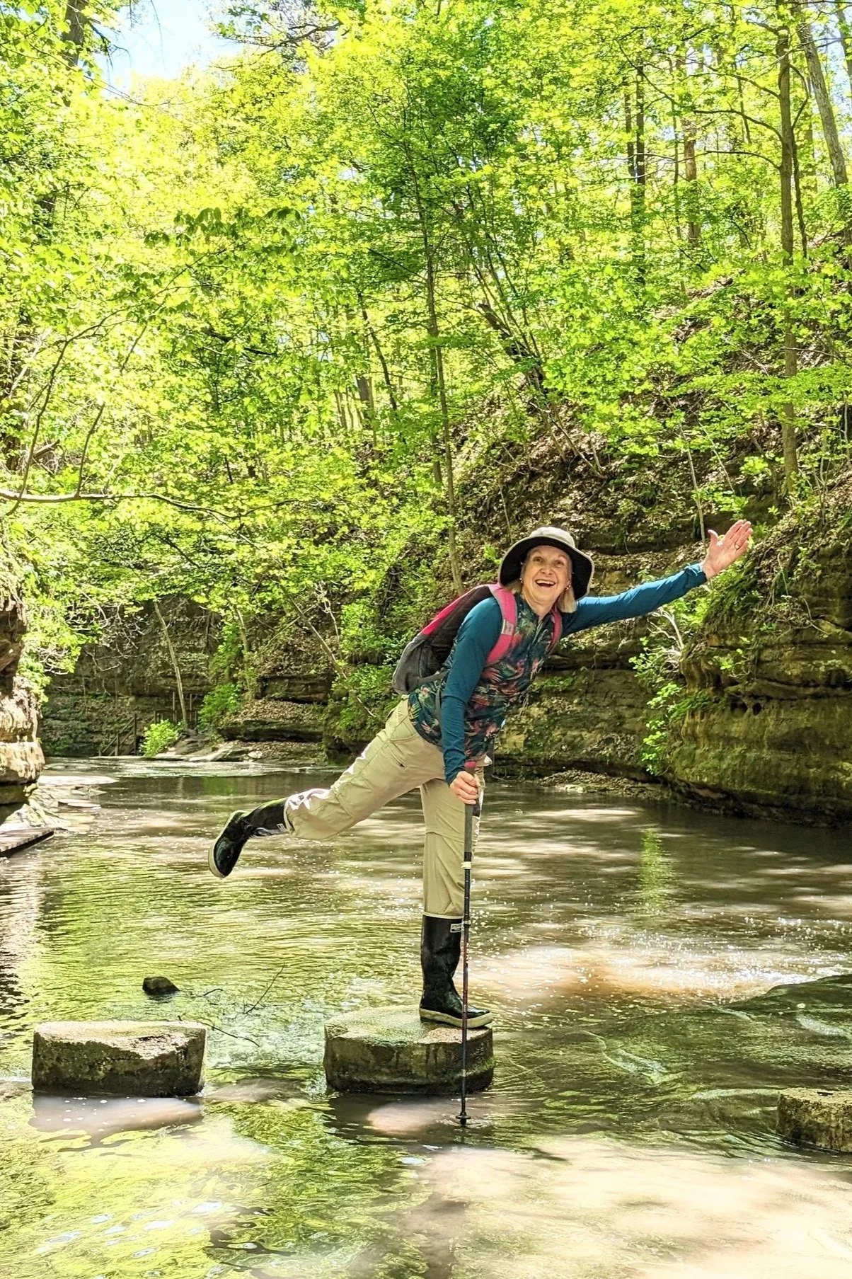 Julie Kanak (aka "Wander Woman") has been a guide for day trips, Midwest getaways, and weeklong trips. She spent most of her professional life in the non-profit world ... at a foster care agency, a hospice program, as a professional mediator and as executive director of an international peace organization. No matter where she was working, this "unabashed tree-hugger" always had time to get out into nature! She recently got certified as a Forest Therapy Guide through the Association of Nature and Forest Therapists {ANFT}. Julie lives in Barrington, is the proud mother of 4 wonderful young men and one gorgeous granddaughter.