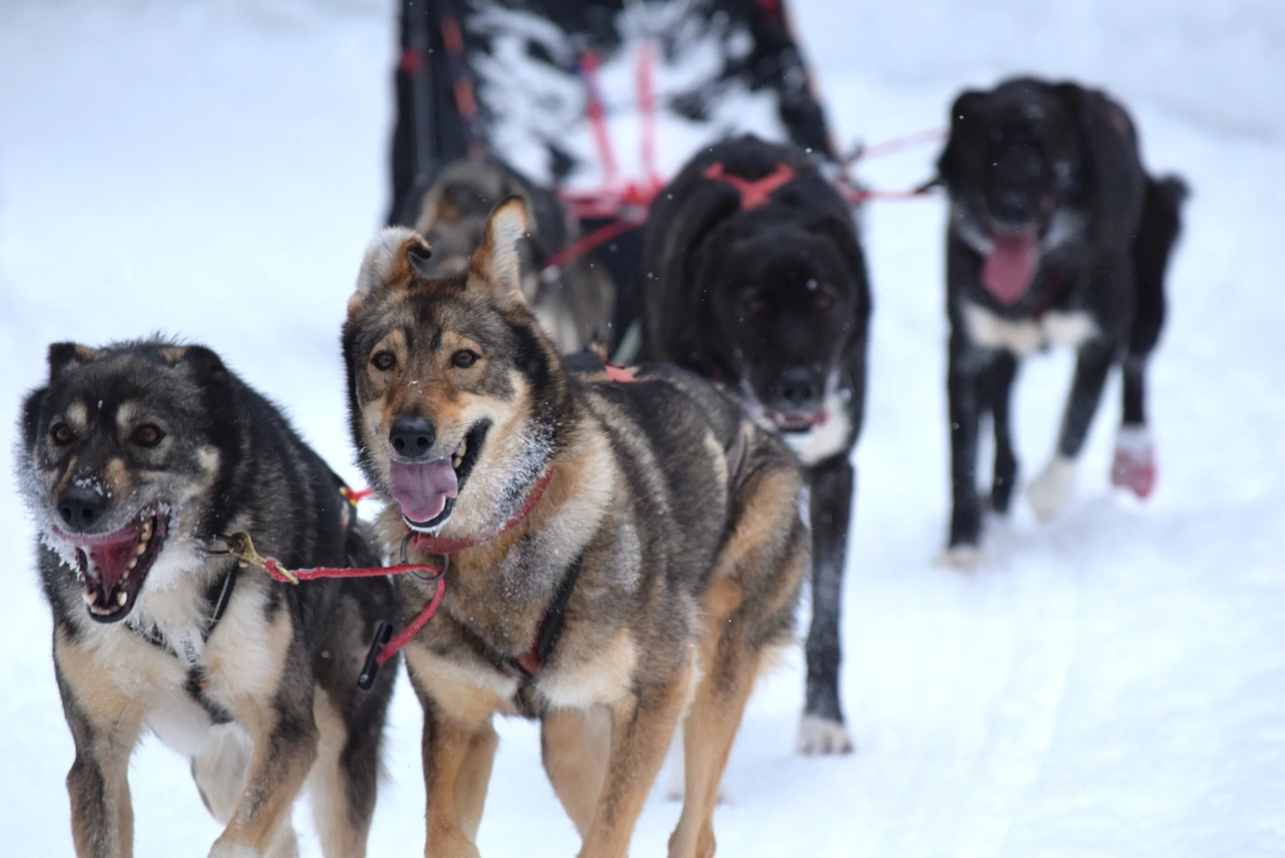 Driving your own team of huskies on a 10 mile dog sled adventure.